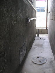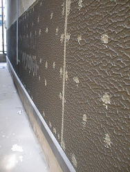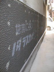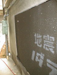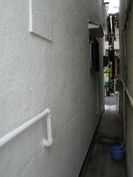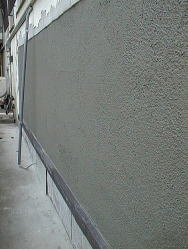 下地調整(プライマー塗布、フイラー塗布処理)後、中塗り、仕上げ塗り(低汚染単層弾性仕上げ塗材)