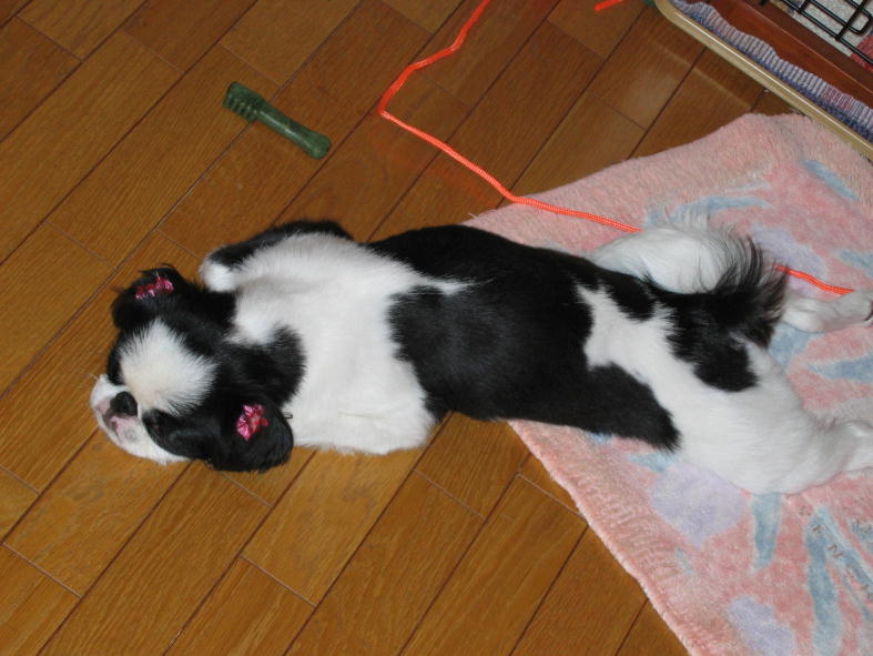 1:我が家の狆は女の子故、オシッコはシート上に座って行います、滅多に沮喪はしませんが無視されたと思った時など