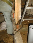 土台及び柱を新しく入れ替え。上の梁も追加補強の為に入れる。
